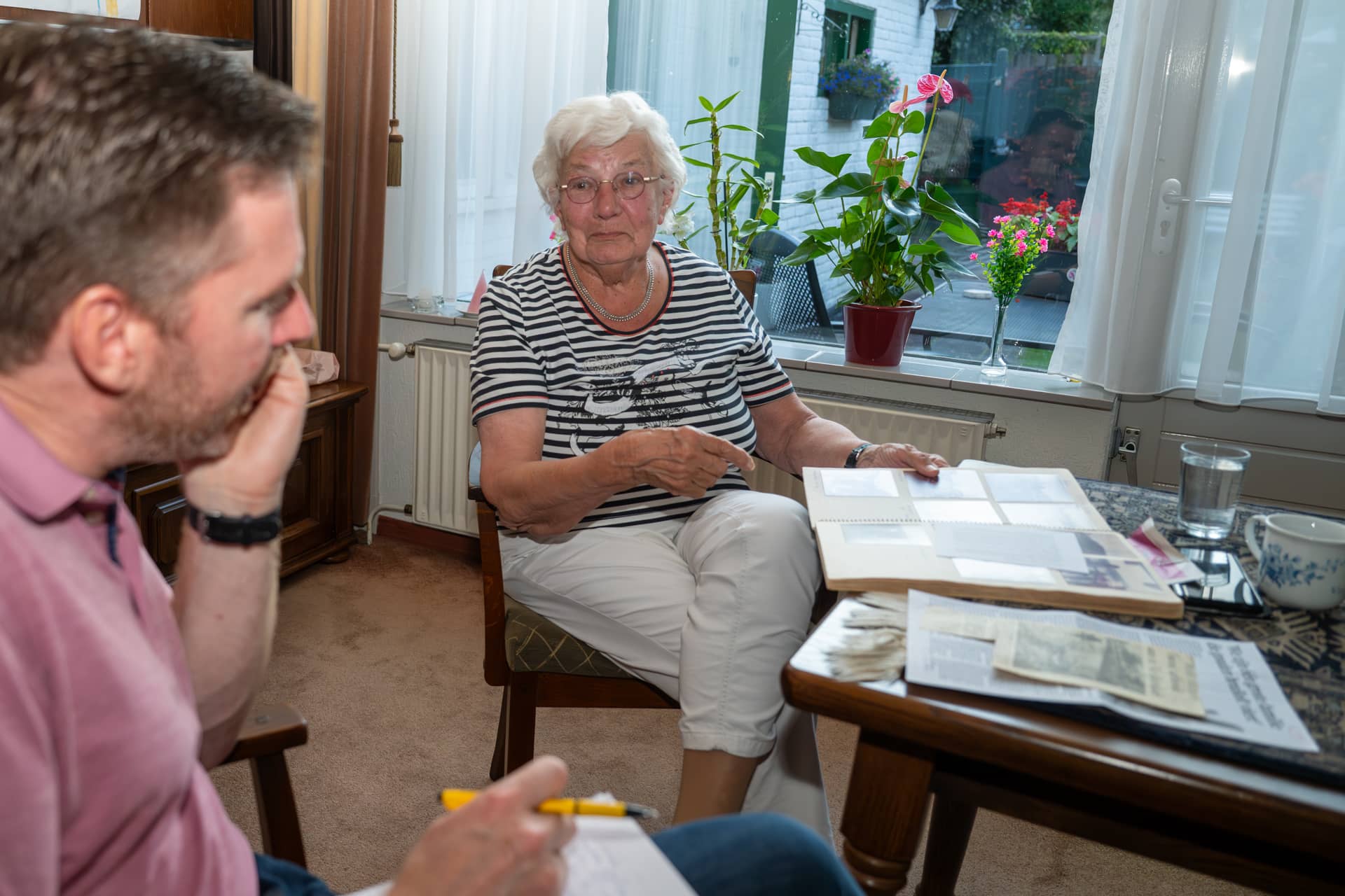 ‘Er komen in de loop der jaren natuurlijk steeds weer nieuwe, aardige mensen wonen. Ik heb nooit problemen met de buren gehad. De buren gaan heel goed om met elkaar. Als er wat is, dan kan ik bij iedereen terecht. Vroeger waren het zwembad De Overdekte, waar de kinderen zwemles hadden, en het schoolplein de sociale ontmoetingsplekken. En in de stad had je natuurlijk de 8-oktoberfeesten en Sint-Maarten. Dat vind ik nog steeds zo enig: die smoeltjes voor de deur! Maar buurtfeesten, zoals die nu worden georganiseerd, had je vroeger niet.