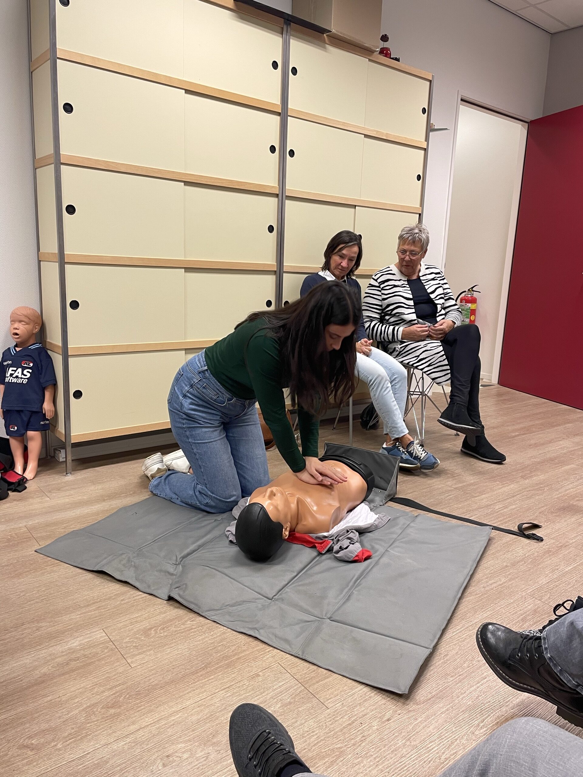 Tijdens de cursus leerden de deelnemers hoe ze moeten reageren bij een noodsituatie: reanimeren en wat te doen bij een verstikking bij zowel volwassenen als kinderen. Ook kregen zij uitleg over het gebruik van de AED die sinds een paar jaar aan de buitenmuur van het gezondheidscentrum hangt: een belangrijk hulpmiddel die levens kan redden bij een hartstilstand in de wijk.